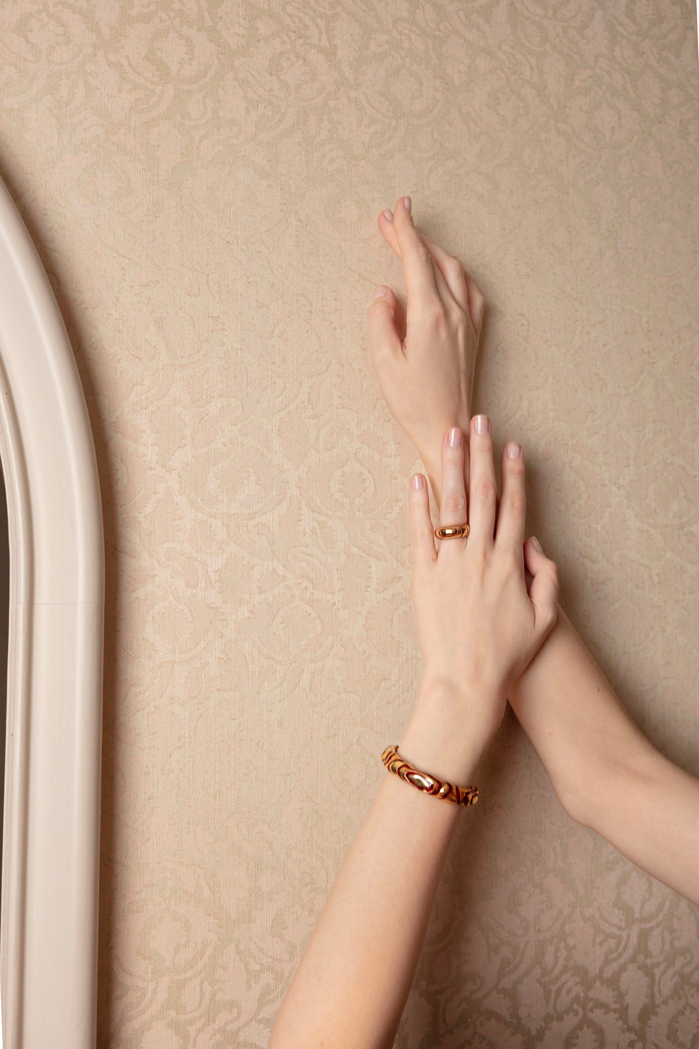 A fluid wave cuff accented with glossy enamel details for a refined yet contemporary statement.