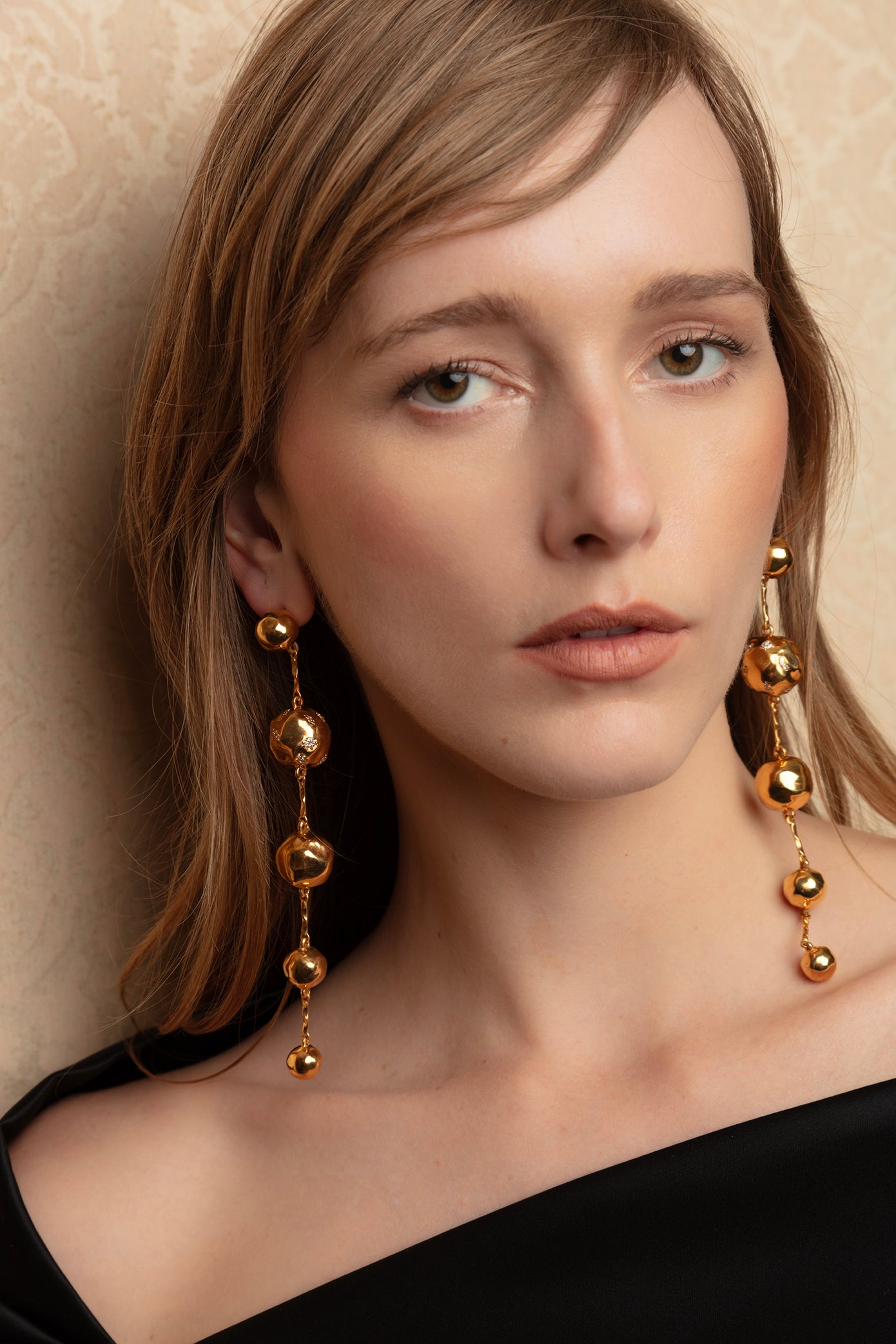A cascade of orbs and stones creates dramatic length and elegant flow.