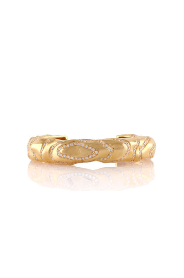 A sculptural wave bangle featuring handset stones that shimmer with fluid elegance.
