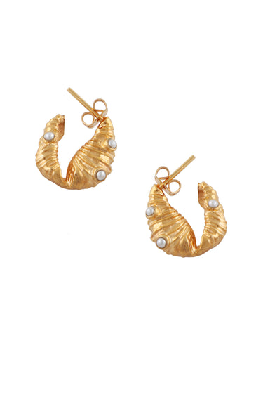 Mini hoop earrings inspired by seashell forms and detailed with mini pearls for delicate elegance.