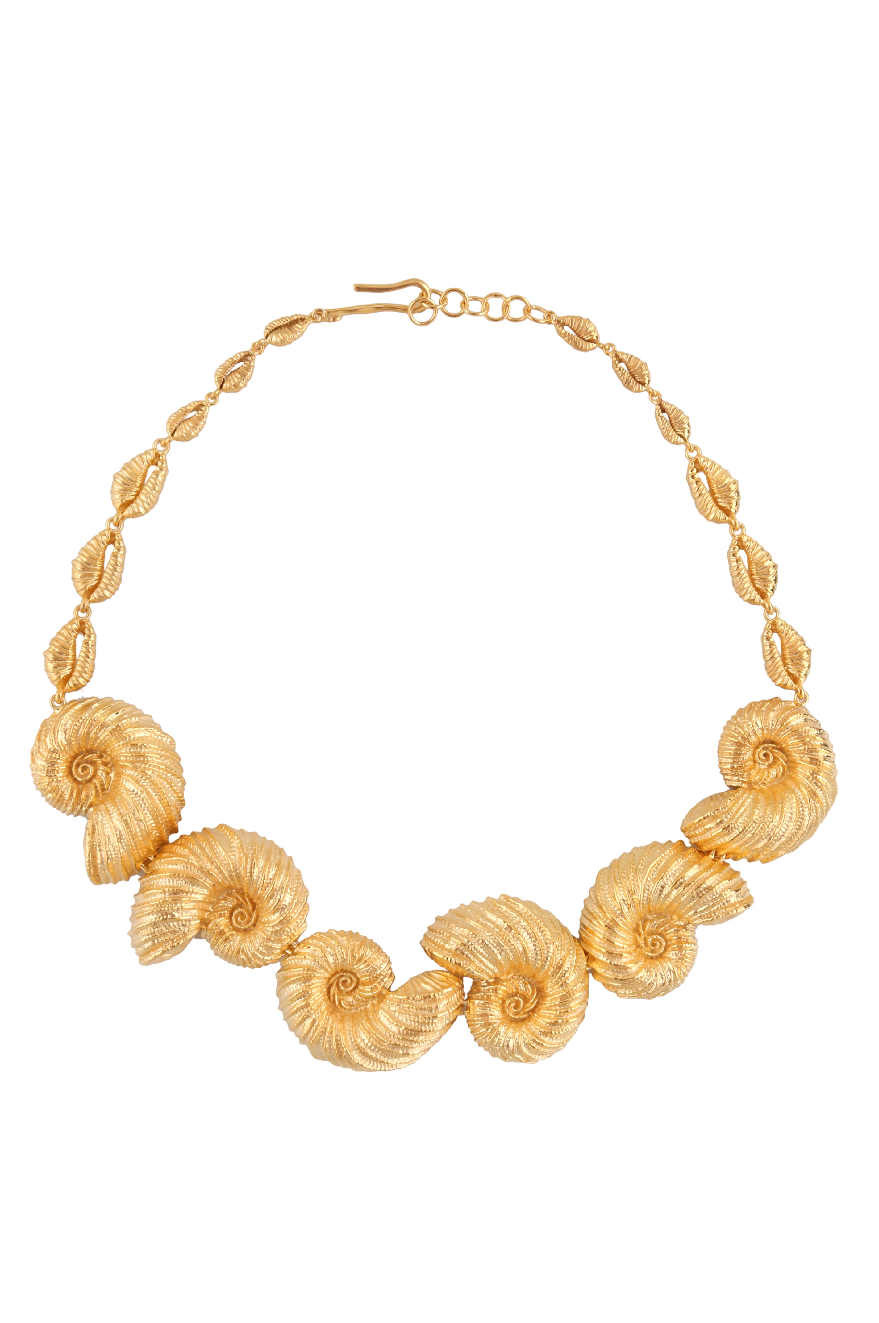 A large gold plated necklace adorned with seashell elements, crafted to make a bold and refined statement.