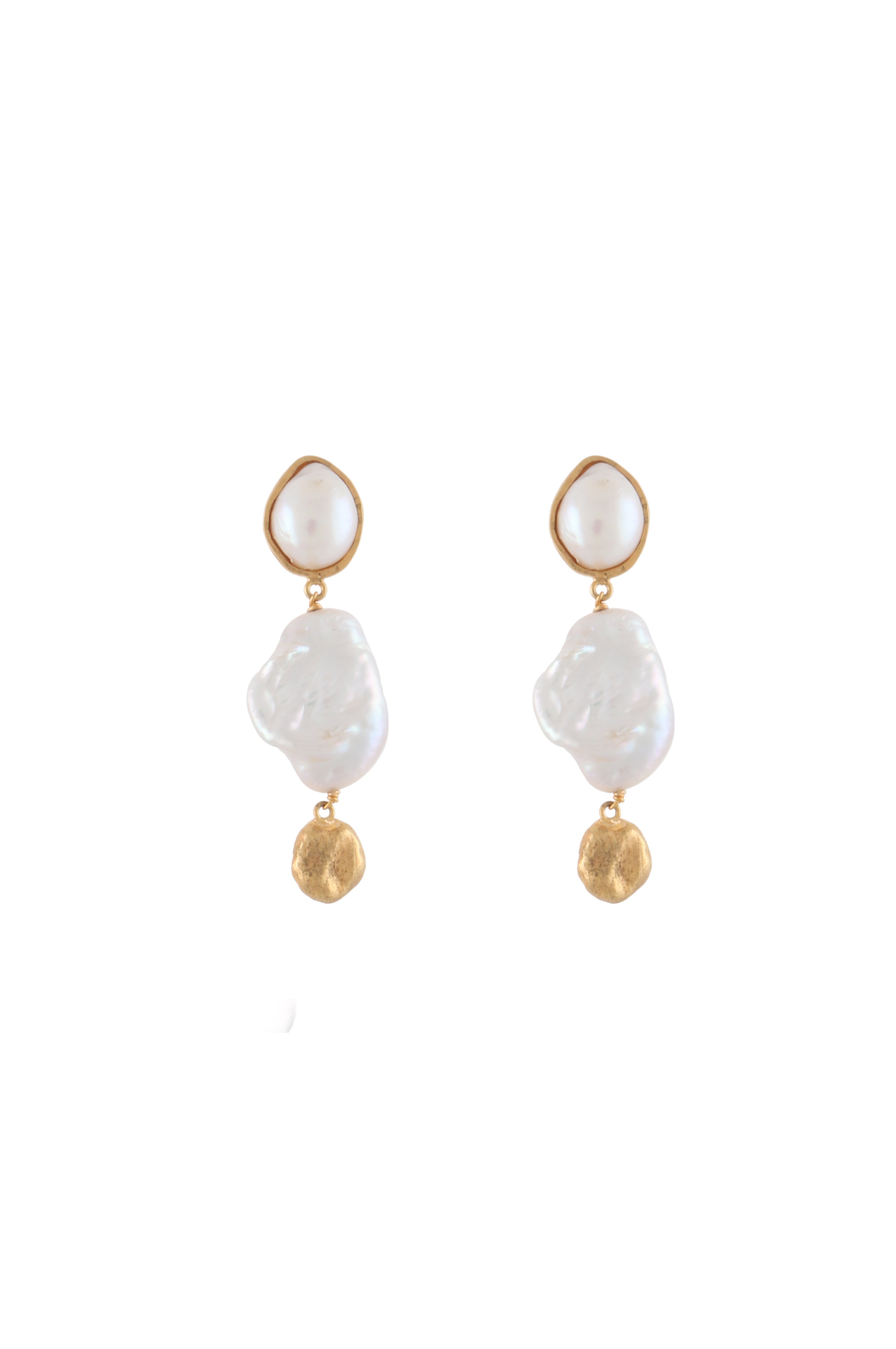 Elegant pearls suspended from gold-toned studs for timeless movement.