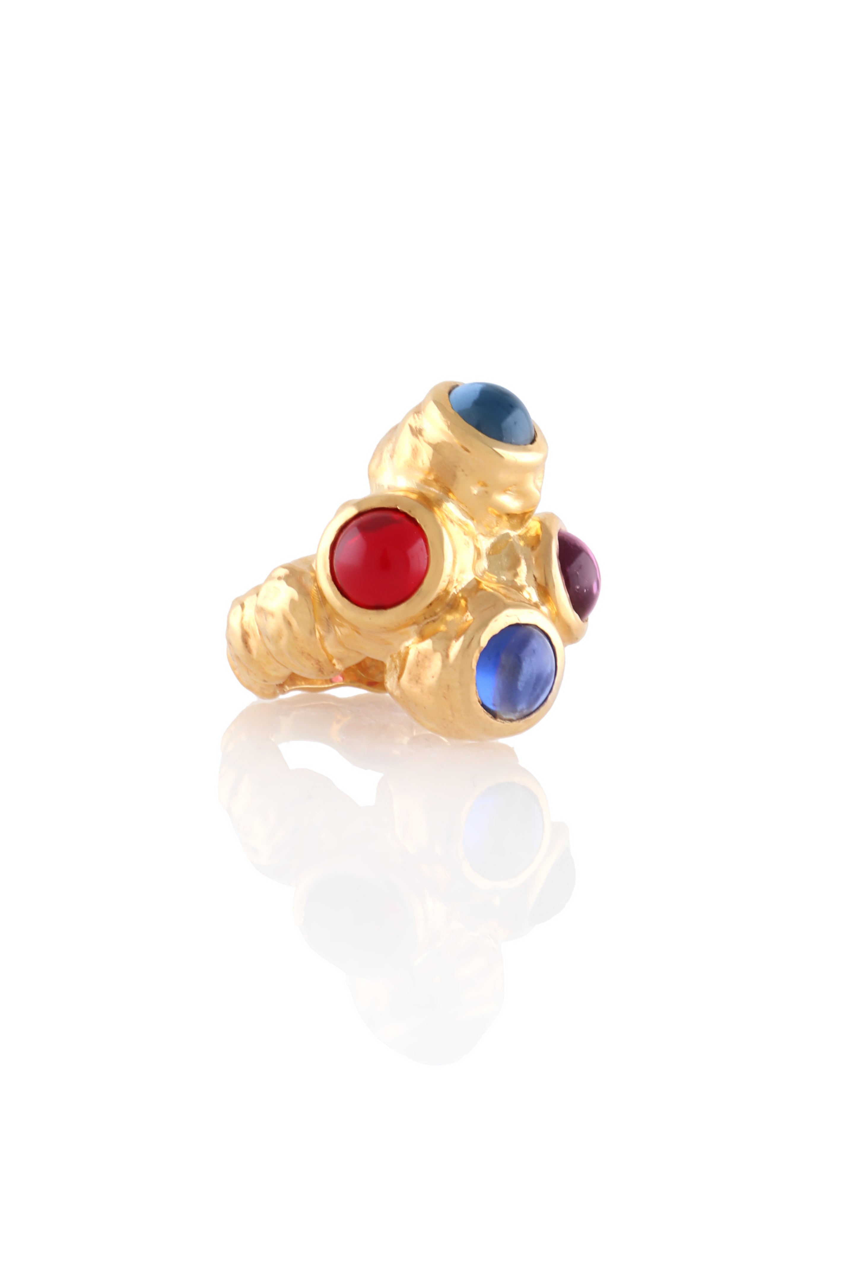 STATEMENT RING WITH MULTI COLORED CABOCHON STONES